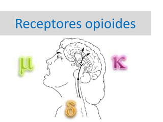 Este documento describe varios opioides como la morfina, fentanil, alfentanil, sufentanil, codeína y metadona. Explica sus mecanismos de acción, dosis, vías de administración, efectos adversos y usos médicos comunes. Los opioides actúan uniendo a los receptores opioides en el sistema nervioso central y periférico para producir analgesia. La morfina es el opioide prototipo mientras que el fentanil y sufentanil son mucho más potentes. La codeína y metadona también se us