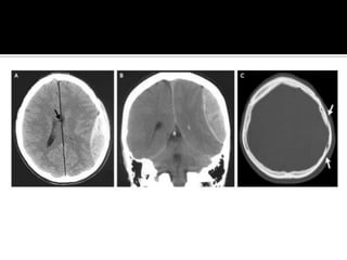 Este caso describe un paciente de 18 años que sufrió un traumatismo craneal con hematoma epidural. Presentó pérdida breve de conciencia tras el golpe y luego dolor de cabeza, náuseas y vómitos. La TC mostró un hematoma epidural de 2.5 cm subyacente a una fractura craneal no desplazada. Fue sometido a cirugía para evacuar el hematoma con buen pronóstico de recuperación.