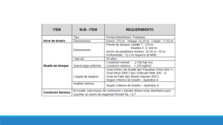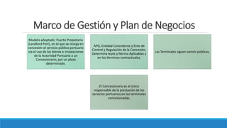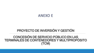El documento describe el proyecto de inversión y gestión de las Terminales de Contenedores y Multipropósito en el Puerto de Guayaquil. Se otorgará una concesión al concesionario para la prestación de servicios portuarios en las terminales. El concesionario deberá realizar inversiones obligatorias por $115 millones para mejorar la infraestructura y equipamiento de las terminales. Se especifican los niveles de servicio exigidos y las obligaciones del concesionario y de la Autoridad Portuaria durante la concesión.