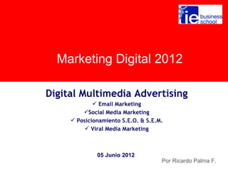 El documento habla sobre las nuevas tendencias en marketing digital como el email marketing, marketing en redes sociales, posicionamiento SEO y SEM, marketing viral y mobile marketing. Explica cómo Google ha ido adquiriendo otras compañías para expandir su dominio en internet y las posibles causas por las que podría fallar en el futuro. También describe herramientas de marketing viral como los juegos publicitarios y cómo el mobile marketing es clave debido a su capacidad para interactuar directamente con los usuarios de forma personalizada.