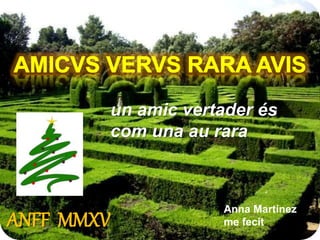 Este documento contiene varias citas, lemas y frases en latín y otras lenguas sobre temas como la amistad, el conocimiento propio, el esfuerzo, la suerte y la concordia. Cada entrada incluye el nombre de la persona que la creó y las siglas "ANFF MMXV" que representan el año 2015.