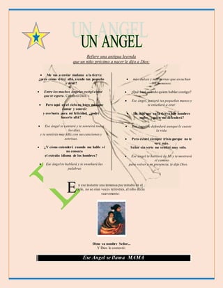 La leyenda cuenta que un niño que estaba por nacer le preguntó a Dios sus preocupaciones sobre vivir en la tierra siendo pequeño y débil. Dios le aseguró que había escogido un ángel para el niño que lo cantaría, sonreiría, enseñaría, defendería y lo guiaría de regreso a Dios, y que ese ángel se llamaba Mamá.