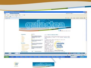 El documento detalla el funcionamiento y objetivos del consorcio Galactea-Plus dentro de la Enterprise Europe Network, enfocándose en la transferencia de tecnología y apoyo a pymes en diversas áreas. Destaca servicios como la promoción de oportunidades tecnológicas, encuentros empresariales y asesoramiento para participar en proyectos europeos. Galactea-Plus busca mejorar la competitividad de las empresas mediante la innovación y la cooperación tecnológica.