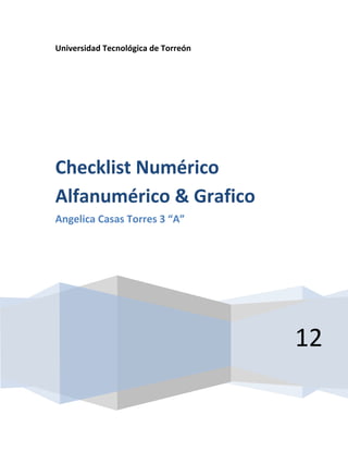 La Universidad Tecnológica de Torreón ofrece una variedad de programas educativos de nivel superior para satisfacer las necesidades de la región. Angelica Casas Torres, estudiante de la clase 3 "A", presentó un proyecto final sobre listas de verificación numéricas, alfanuméricas y gráficas.