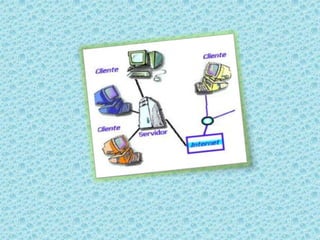 El documento habla sobre conceptos clave de Internet y la World Wide Web. Explica que un cliente es un dispositivo o programa que consume recursos de otro llamado servidor, y que Internet es una red descentralizada de redes interconectadas que usan protocolos TCP/IP. También describe brevemente la World Wide Web, navegadores web y motores de búsqueda.