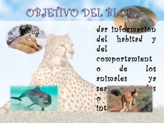 Este documento habla sobre varias especies de felinos en peligro de extinción debido a la pérdida de hábitat y presas. Describe el hábitat, tamaño y amenazas para cada especie, incluyendo el leopardo de las nieves, gato pescador, lince ibérico, gato de cabeza plana, gato de Borneo, gato andino, gato jaspeado y gato de pies negros. La deforestación, destrucción de humedales, caza furtiva y envenenamiento ponen en ries