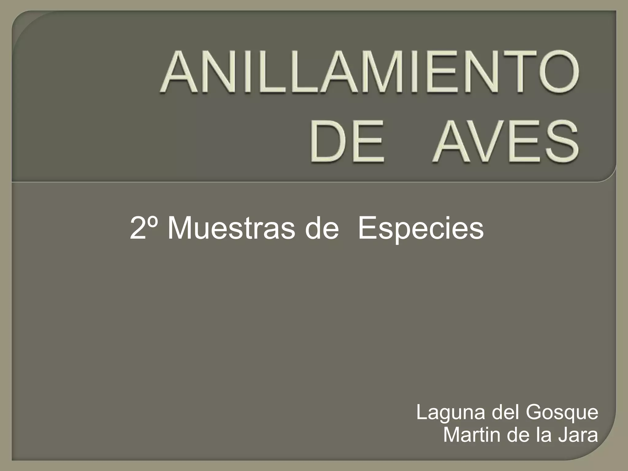 El documento habla sobre el anillamiento de aves en la Laguna del Gosque. Se menciona el anillamiento de muestras de especies de aves en esta laguna ubicada en el pueblo de Martin de la Jara.