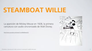 El documento proporciona una breve historia de la animación 2D, mencionando algunos de los primeros cortometrajes animados de Walt Disney como Steamboat Willie de 1928, The Skeleton Dance y Flowers and Trees de 1932. También señala que Blancanieves y los Siete Enanos de 1937 fue el primer largometraje animado del mundo. Finalmente, propone varios temas para una investigación sobre la historia de la animación 2D.
