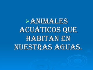 El documento presenta información sobre diversos animales marinos, incluyendo el caballito de mar, pulpo, tortuga marina, zacor, estrella de mar, raya, pez martillo, delfín, avispa de mar, pez volador, medusa, tiburón blanco, pez globo, pez trípode, pez payaso y pez espada. Se describen sus características físicas, hábitats, comportamientos y otros detalles relevantes.