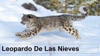 El documento presenta información sobre varios animales en peligro de extinción como el leopardo de las nieves, el orangután, el tigre de Bengala y el oso polar. Cada animal es descrito brevemente con detalles sobre su hábitat, alimentación, comportamiento y las principales amenazas que enfrentan como la pérdida de hábitat y la caza furtiva.