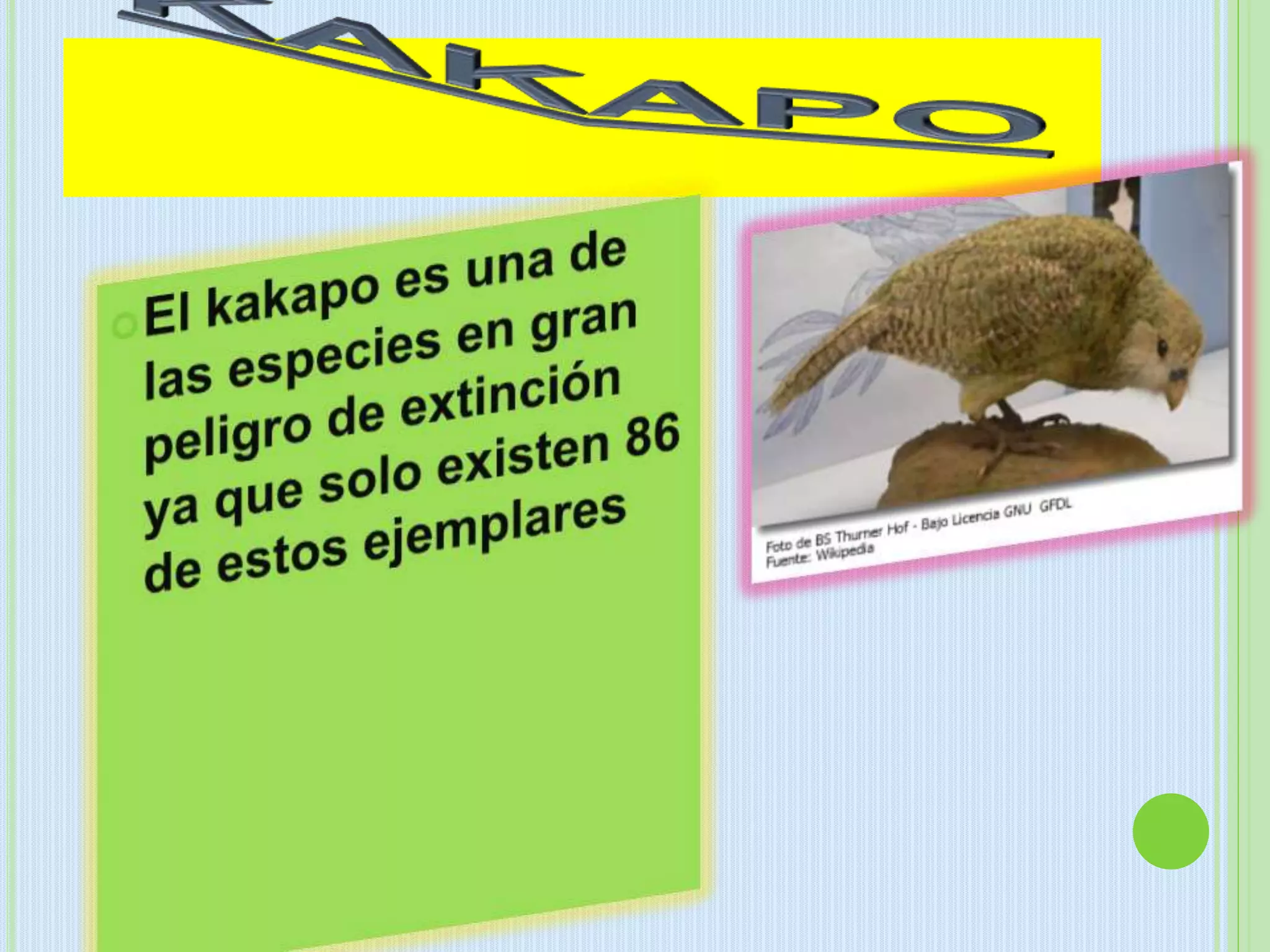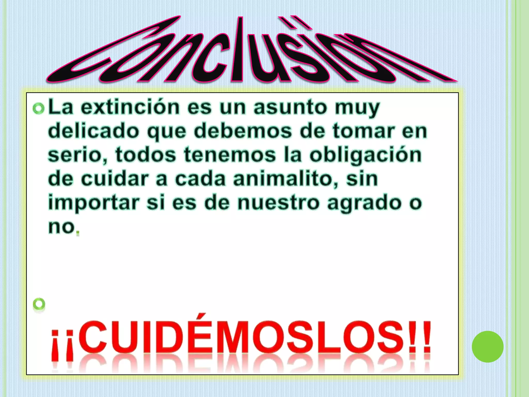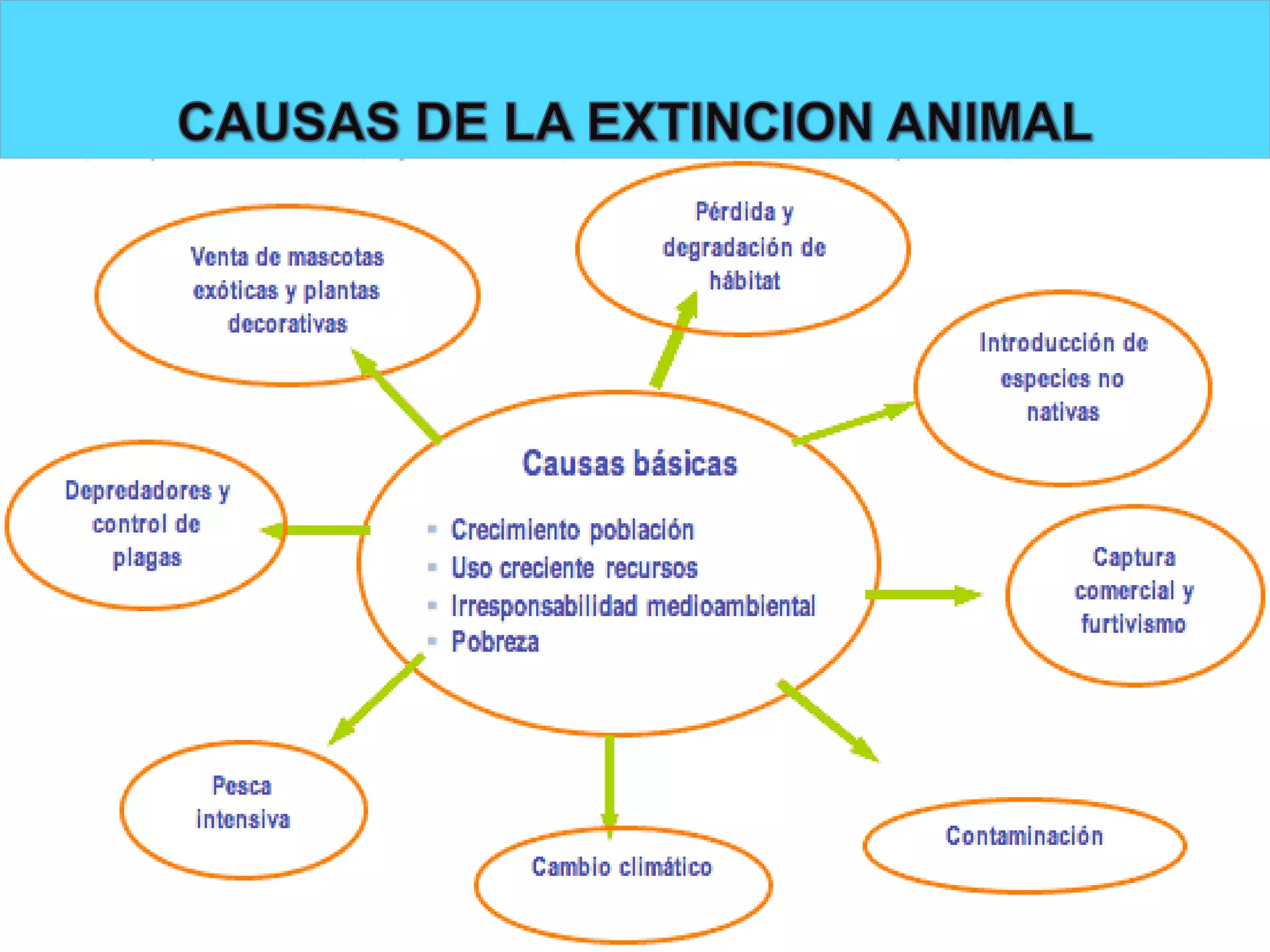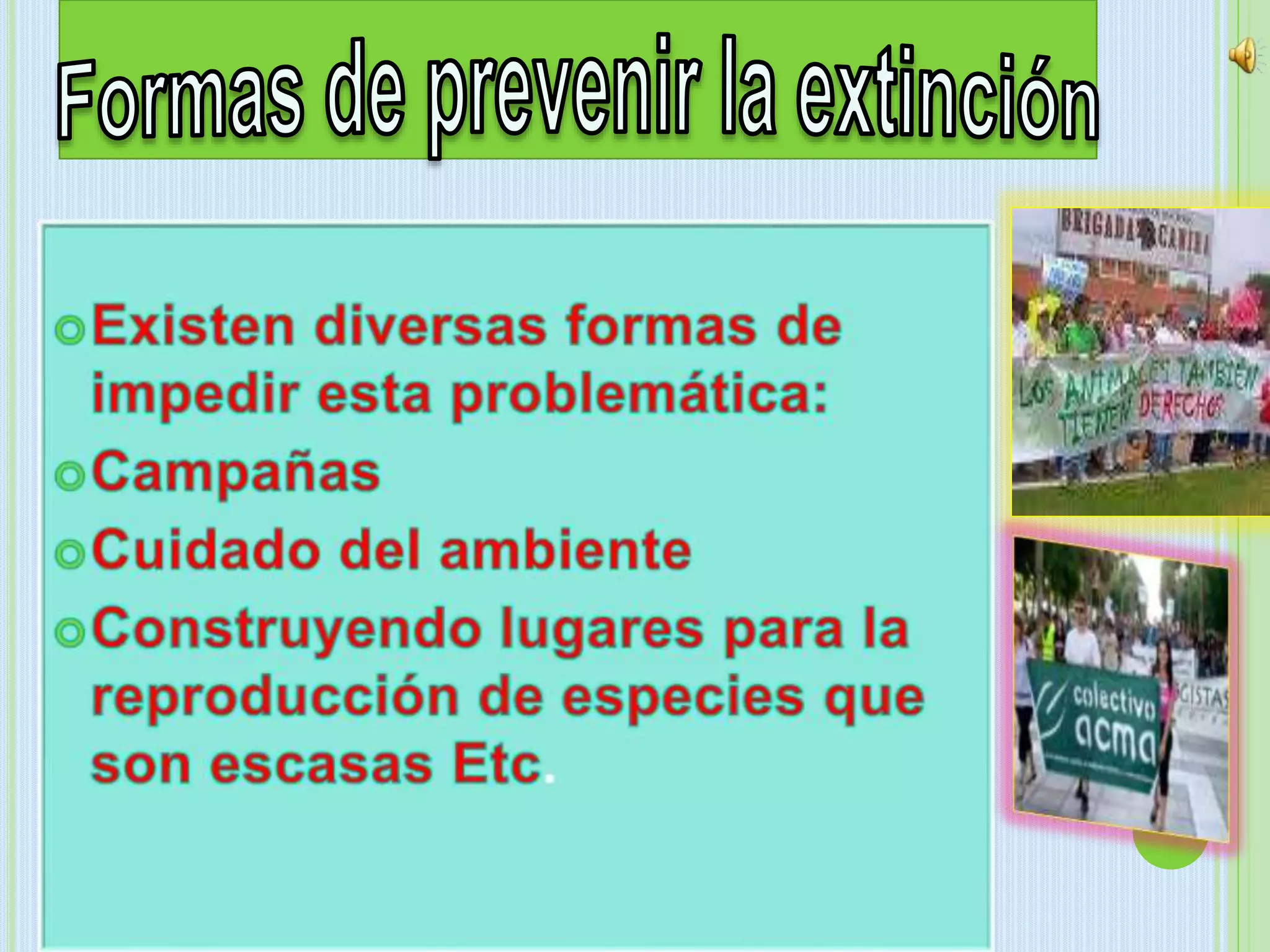 El documento lista varios temas relacionados con la extinción de especies, incluyendo las causas (como la caza de aves para plumas), ejemplos de especies en peligro de extinción como el halcón peregrino y varias aves y mamíferos. También menciona las consecuencias de la extinción de especies y formas de evitarla, antes de concluir y listar fuentes de información adicionales.