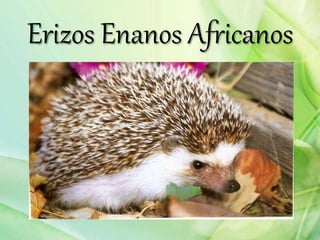 Este resumen describe cuatro animales exóticos: el erizo enano africano, el delfín rosa, el camarón mantis y el topo de nariz estrellada. El erizo enano africano es pequeño, originario de África y se acostumbra fácilmente a las personas. El delfín rosa vive en el Amazonas, es prácticamente ciego y se guía por ecolocalización. El camarón mantis tiene ojos complejos que ven 12 colores y usa sus tenazas para cazar. Finalmente, el
