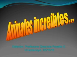 Esta es una presentación con curiosos y hermosos animales, que muestran la gran biodiversidad de nuestro planeta y la necesidad de preservarla para las generaciones futuras.