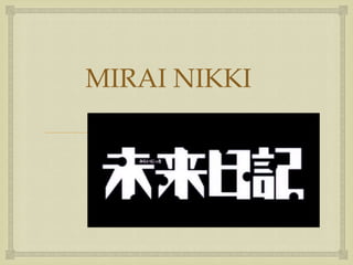 Mirai Nikki trata sobre un chico llamado Yukiteru Amano que obtiene un diario del futuro. Otro usuario es Yuno Gasai, que desarrolla una obsesión por Yukiteru. La historia también presenta a Keigo Kurusu, cuyo diario predice crímenes. Itazura Na Kiss sigue la historia de amor entre Kotoko Aihara y Naoki Irie. Another se centra en los misteriosos sucesos que ocurren en la clase 3-3 de Kōichi Sakakibara en Yomiyama.