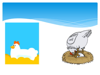 Este documento presenta información sobre dos animales de la zona marino costera de Chincha: los pingüinos y las gallinas. Los pingüinos son aves marinas que no pueden volar pero sí son capaces de volar en el agua, mientras que las gallinas son aves domésticas muy numerosas que incluyen gallos y gallinas.
