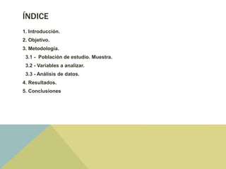 El resumen analiza un informe estadístico sobre seminarios de estadística bivariada. El informe incluye una introducción, objetivos, metodología, resultados y conclusiones. Los resultados muestran que no hay asociación entre el sexo y la práctica de deporte, pero sí la hay entre la práctica de deporte y el nivel de vida saludable de una persona. Las conclusiones confirman que no se puede afirmar una relación entre el sexo y el deporte, pero sí entre el deporte y la salud de una persona.