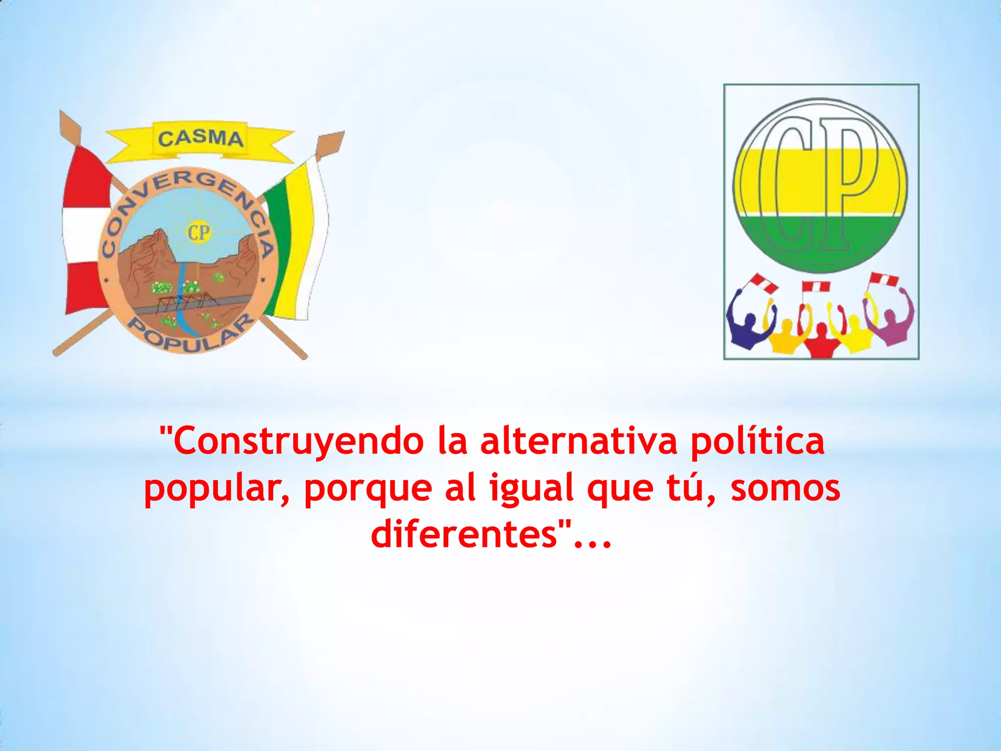 Este documento describe la crisis política, social y económica en Perú y la provincia de Casma. Señala que Casma refleja esta crisis a través de la riqueza que enriquece a unos pocos mientras la mayoría vive en pobreza, inseguridad e inequidad. Propone construir una alternativa política popular diferente mediante la participación ciudadana, la transparencia, el desarrollo industrial sostenible y otros principios para superar la crisis.