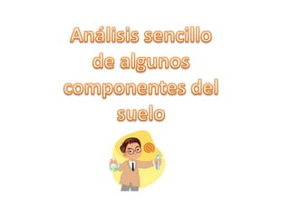 El documento describe el análisis del suelo a través de un experimento que investiga la solubilidad de sus componentes en agua y en medios ácidos. Se presentan procedimientos detallados para realizar pruebas de pH y observar reacciones químicas con diversos reactivos, lo que permite identificar la presencia de iones como cloruro, sulfato y hierro. Además, se discute la influencia del tipo de suelo en los resultados obtenidos y las variaciones en pH.