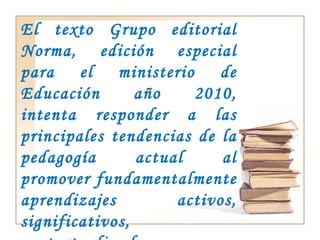El documento describe la metodología y organización de un texto escolar para estudiantes de primer año básico. Presenta contenidos y actividades que promueven el aprendizaje activo, significativo y contextualizado. Se organiza en torno a 7 unidades temáticas divididas en 2 grandes temas, abordando de forma integrada la comunicación oral, lectura, escritura y lenguaje a través de textos literarios.