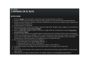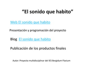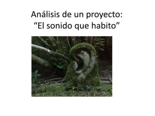 Este documento resume un proyecto educativo llamado "El sonido que habito". El proyecto involucra a estudiantes de secundaria y bachillerato en actividades como grabar sonidos en su entorno, subirlos a SoundCloud, crear un mapa colaborativo y publicar entradas en el blog del proyecto. El objetivo es integrar el uso de dispositivos móviles en el aula de una manera didáctica. El producto final será una entrada de blog describiendo la experiencia.