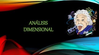 El documento presenta los conceptos básicos del análisis dimensional. Explica que una magnitud es todo aquello que puede medirse con un número y una unidad, y clasifica las magnitudes en fundamentales y derivadas. Describe las propiedades de las ecuaciones dimensionales y el principio de homogeneidad dimensional, el cual establece que en una igualdad matemática, los términos deben tener la misma dimensión. Como ejemplo, analiza la ley de la gravitación universal para determinar la dimensión de la constante G.