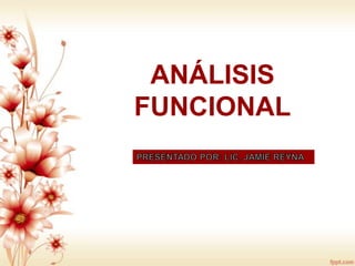 El análisis funcional es una técnica para identificar las competencias laborales inherentes a una función productiva, como un sector ocupacional, empresa o grupo de empresas. Consiste en un proceso paso a paso que incluye conformar un grupo de expertos, determinar necesidades, elaborar el propósito y mapa funcional, e identificar unidades y elementos de competencia. Su objetivo es describir perfiles ocupacionales por competencias de manera coherente y sistemática.