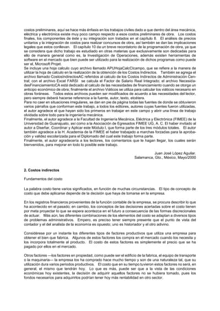 Este documento presenta un resumen de un libro sobre análisis de precios unitarios. Explica conceptos como costos directos e indirectos y cómo calcularlos. También describe cómo determinar los costos de mano de obra, materiales, equipos y otros factores para establecer precios precisos de proyectos de construcción. El objetivo es proveer una guía detallada para realizar un presupuesto completo basado en un análisis minucioso de todos los costos involucrados.