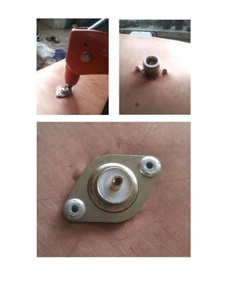 Este documento describe cómo construir una antena WIFI de doble banda (biquad) utilizando materiales como cobre, alambre, conectores y separadores. Explica los pasos para cortar y doblar el alambre para formar el reflector y alimentador, y cómo ensamblar los componentes utilizando soldadura. También resume las pruebas realizadas con la antena donde se alcanzaron velocidades de hasta 5.82 Mbps a una distancia de 55 metros.