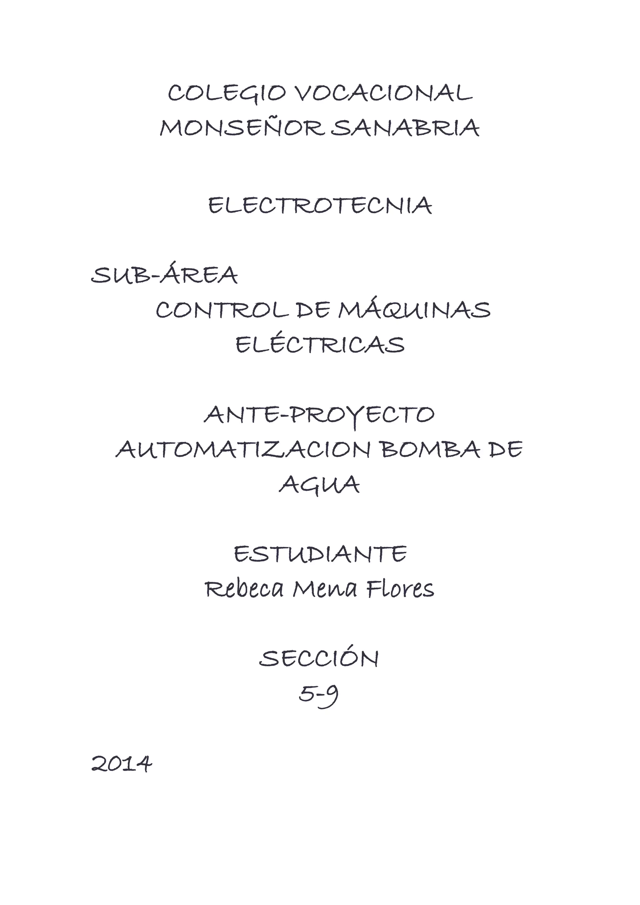 Este documento describe un proyecto para automatizar una bomba de agua para llenar un tanque. Explica que el sistema mantendrá el nivel de agua en el tanque mediante el uso de una bomba que se activará cuando el nivel baje y se desactivará cuando alcance el nivel máximo. Incluye un diagrama del circuito de control y una lista de los materiales necesarios para construir el sistema automatizado, como terminales, transistores, relés, capacitores y resistencias.