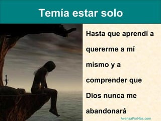 El documento presenta una serie de temores comunes y cómo se superaron una vez que la persona comprendió una verdad fundamental. Los temores incluyen estar solo, fracasar, la opinión de los demás, el rechazo y el dolor, entre otros. En cada caso, el aprendizaje de una lección o el entendimiento de un principio trajo paz y superación del temor.