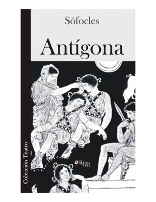 Este documento presenta la obra teatral Antígona de Sófocles. Comienza con una conversación entre Antígona e Ismene sobre el decreto de Creonte que prohíbe enterrar el cuerpo de Polinices. Antígona decide desafiar el decreto y enterrar a su hermano, mientras que Ismene se niega a desafiar la autoridad. Antígona luego entierra a Polinices y es descubierta por un guardia.