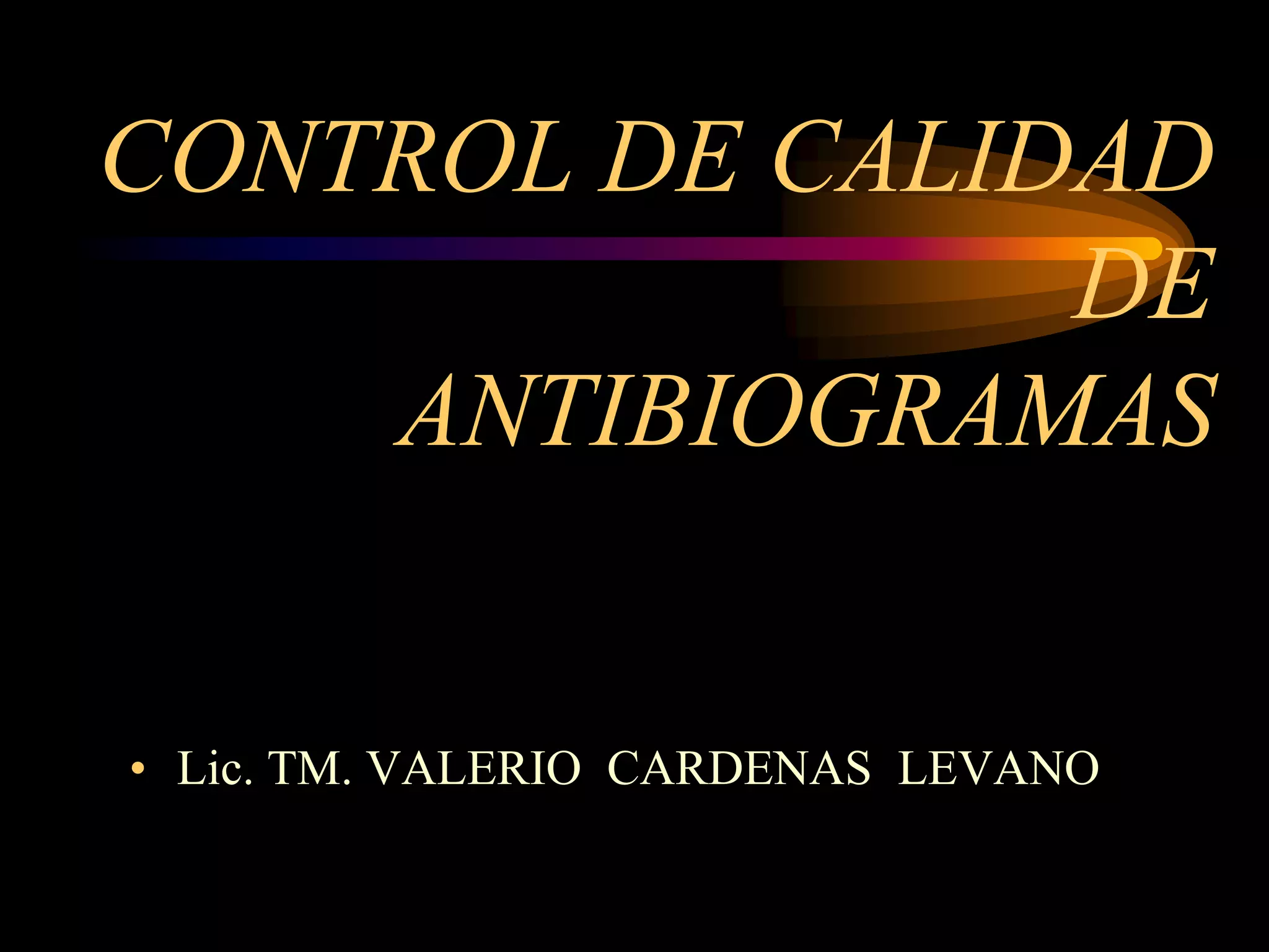 Este documento describe los procedimientos y controles de calidad para realizar antibiogramas. Explica que la calidad implica satisfacer necesidades establecidas a través de fiabilidad, reproducibilidad y rapidez. Detalla factores que afectan los resultados como el personal, equipo y muestras, y establece protocolos de bioseguridad. También cubre métodos como el de Kirby-Bauer y el uso de cepas de control para garantizar la precisión de los resultados.