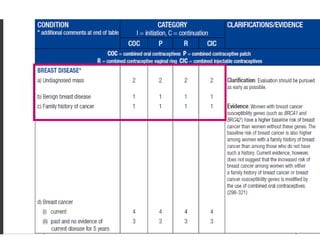 El documento resume los principales aspectos de los anticonceptivos hormonales combinados de estrógenos y gestágenos. Explica su mecanismo de acción, clasificación según dosis y componentes, efectos, seguridad y criterios de elección. También aborda controversias como su relación con el riesgo trombótico y de cáncer de mama y cérvix.