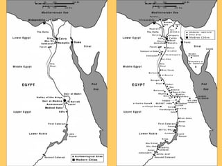 El documento proporciona una cronología detallada de las dinastías y períodos históricos del Antiguo Egipto, desde el período predinástico hasta la conquista romana. También describe aspectos clave de la civilización egipcia como su geografía, sistema político basado en las dinastías faraónicas, religión, arte, arquitectura pirámides y otras construcciones, y cómo estas reflejaban su cosmogonía.