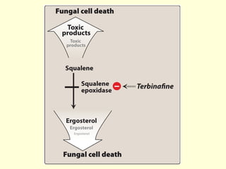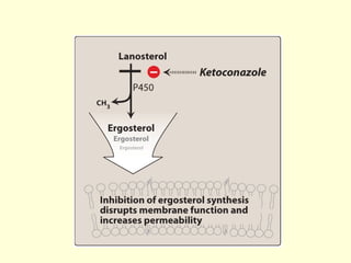 Este documento describe diferentes antimicóticos utilizados para tratar infecciones micóticas. Explica que las infecciones micóticas se clasifican en superficiales y sistémicas, y que los principales fármacos para tratarlas incluyen anfotericina B, fluconazol, flucitosina, ketoconazol e itraconazol. También describe brevemente los mecanismos de acción, efectos adversos y usos de varios antimicóticos comunes.