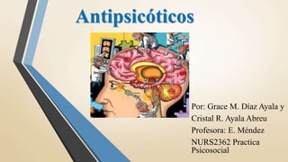 Este documento define los antipsicóticos y distingue entre medicamentos antipsicóticos típicos y atípicos. Explica que los típicos son más propensos a causar efectos secundarios extrapiramidales mientras que los atípicos tienen menor riesgo. También describe el síndrome neuroléptico maligno y las consideraciones de enfermería para la administración de antipsicóticos.