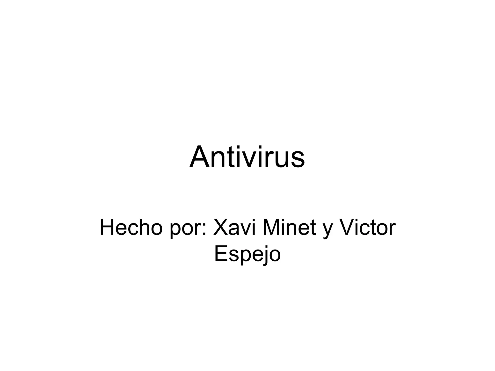 Antivirus Que esun antivirus? Es un programa creado para prevenir o evitar la entrada de virus informaticos en el ordenador y podamos tener problemas mayores.