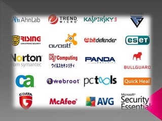 Los antivirus son programas cuyo objetivo es detectar y eliminar virus informáticos. Se originaron en la década de 1980 y han evolucionado para reconocer otros tipos de malware además de virus. Existen diferentes métodos para detectar virus, como comparar firmas de archivos, usar métodos heurísticos o invocarse por actividad del usuario o sistema. Los antivirus son una herramienta importante pero no garantizan protección total, por lo que también se deben implementar copias de seguridad y otras medidas de seguridad.