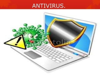 Los antivirus son programas cuyo objetivo es detectar y eliminar virus informáticos y otros tipos de malware. Nacieron en la década de 1980 y han evolucionado para bloquear, desinfectar archivos e impedir infecciones, reconociendo virus, spyware, gusanos, troyanos, rootkits u otros. Los antivirus usan métodos como detección, desinfección, comparación de firmas o heurísticos para identificar software malicioso.