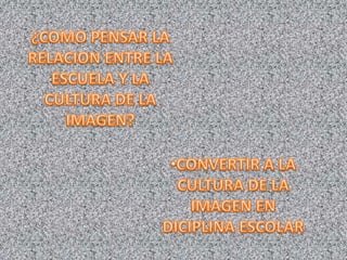 El documento presenta un grupo de 5 integrantes que analizan nuevos medios culturales como Internet y el cine y cómo estos afectan las emociones y las nuevas generaciones. También discute los desafíos y cambios en las transformaciones del saber, las relaciones, y la necesidad de una pedagogía visual para estabilizar, formar y representar contenidos sobre el mundo en la era digital.