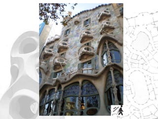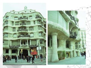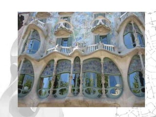 Este documento resume la vida y obra del arquitecto catalán Antoni Gaudí. Nació en 1852 en Reus, España y se caracterizó por crear formas innovadoras inspiradas en la naturaleza y estructuras desafiantes. Algunas de sus obras más representativas incluyen la Casa Vicens, la Casa Batlló y la Sagrada Familia. Gaudí se convirtió en uno de los máximos exponentes del modernismo y tuvo una gran influencia de la naturaleza, las artes y artesanías y la tradición