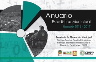 El Anuario Estadístico Municipal de Ibagué 2016-2017 presenta un análisis detallado de aspectos geográficos, sociales, económicos, territoriales e institucionales de la ciudad. Incluye datos sobre demografía, salud, pobreza, educación, empleo y seguridad, proporcionando una visión integral del desarrollo y desafíos de Ibagué. El documento es una herramienta clave para la planificación y el diseño de políticas públicas en el municipio.