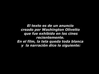El anuncio presenta un mensaje blanco sin características comunes de los anuncios como mujeres, acción, música o personas famosas. Busca vender "paz" como un producto que todos necesitan pero no siempre usan. Alienta a las personas a usar más paz en su vida diaria y compartirla con los demás para crear un mundo donde la paz sea abundante y no se necesiten anuncios para venderla.