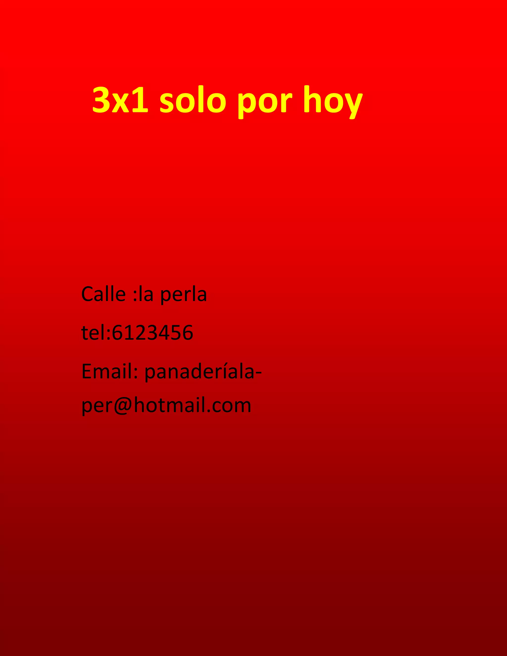La panadería La Perla se encuentra en la calle La Perla con número de teléfono 6123456 y dirección de correo electrónico panaderíala-per@hotmail.com.