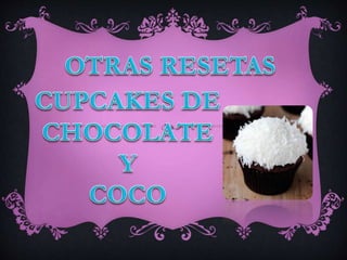 Este documento contiene una receta tradicional para hacer cupcakes de chocolate. Incluye instrucciones detalladas para preparar la masa con ingredientes como mantequilla, cacao en polvo, harina y huevos. Luego indica cómo rellenar los moldes y hornear los cupcakes a 180°C durante 20 minutos. Finalmente, ofrece opciones para decorar los cupcakes una vez fríos, como con buttercream de chocolate.