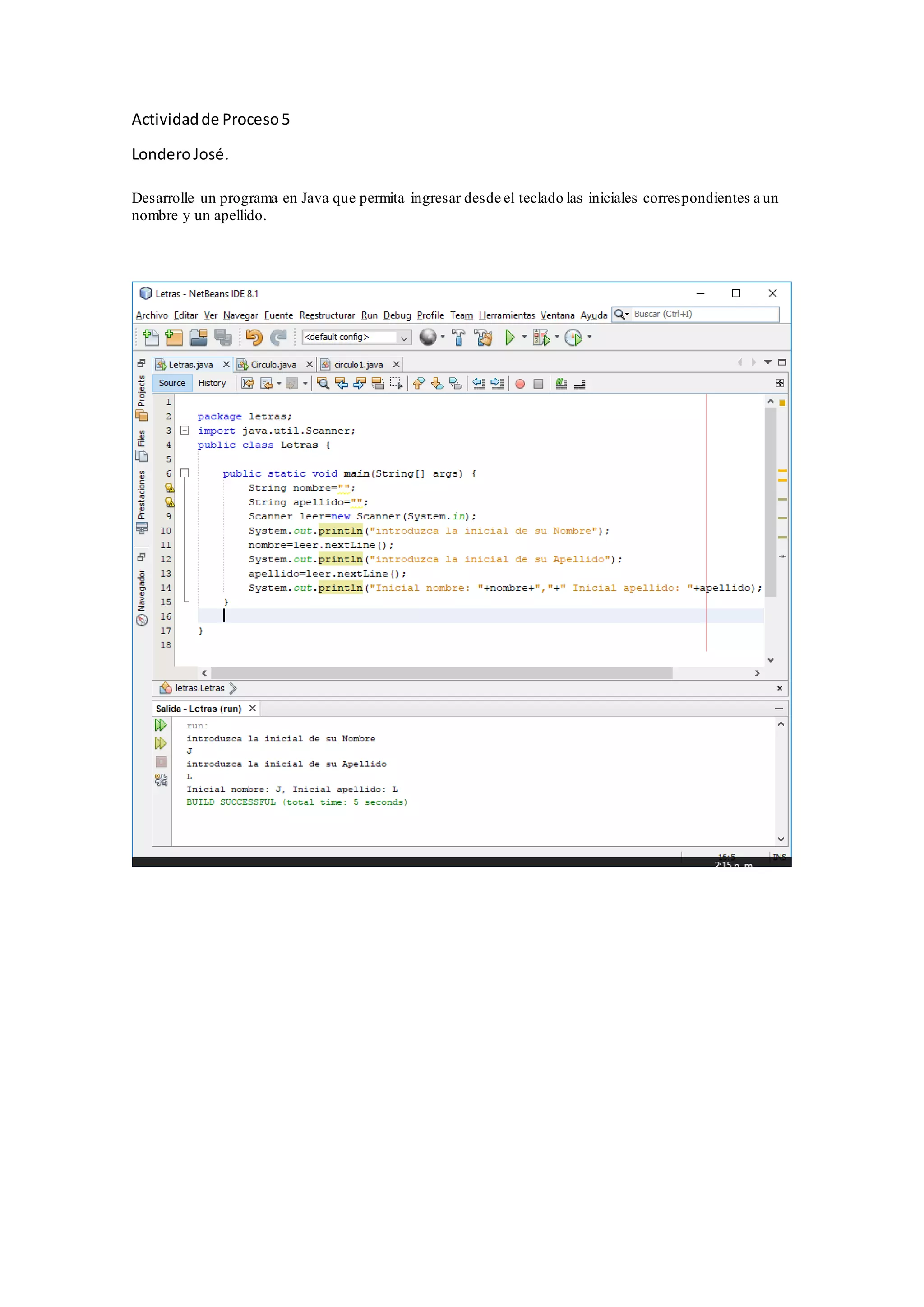 El programa permite ingresar las iniciales de un nombre y apellido desde el teclado y luego las muestra en pantalla.