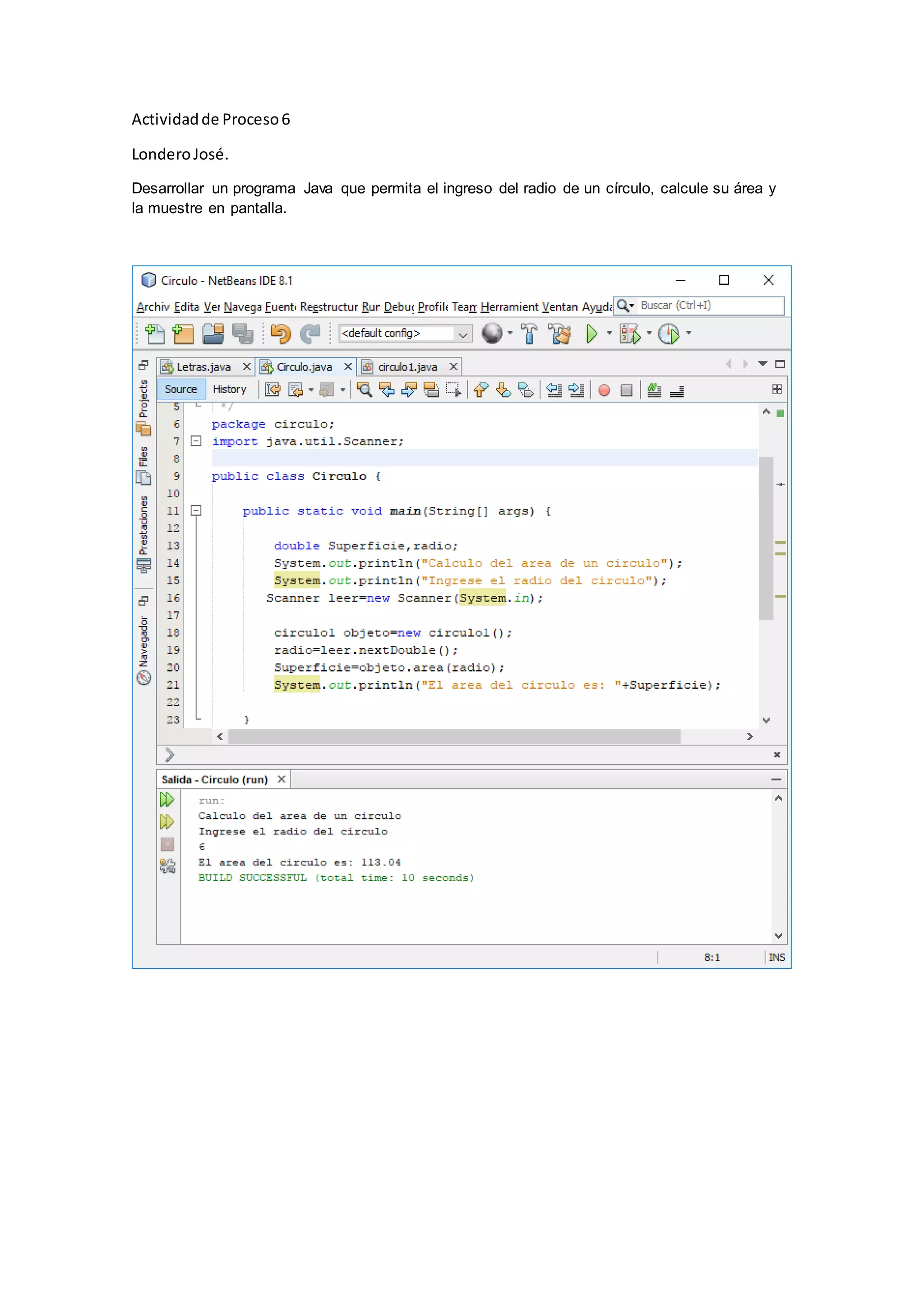 El programa permite ingresar el radio de un círculo, calcula su área usando la fórmula de área de un círculo y muestra el resultado en pantalla.