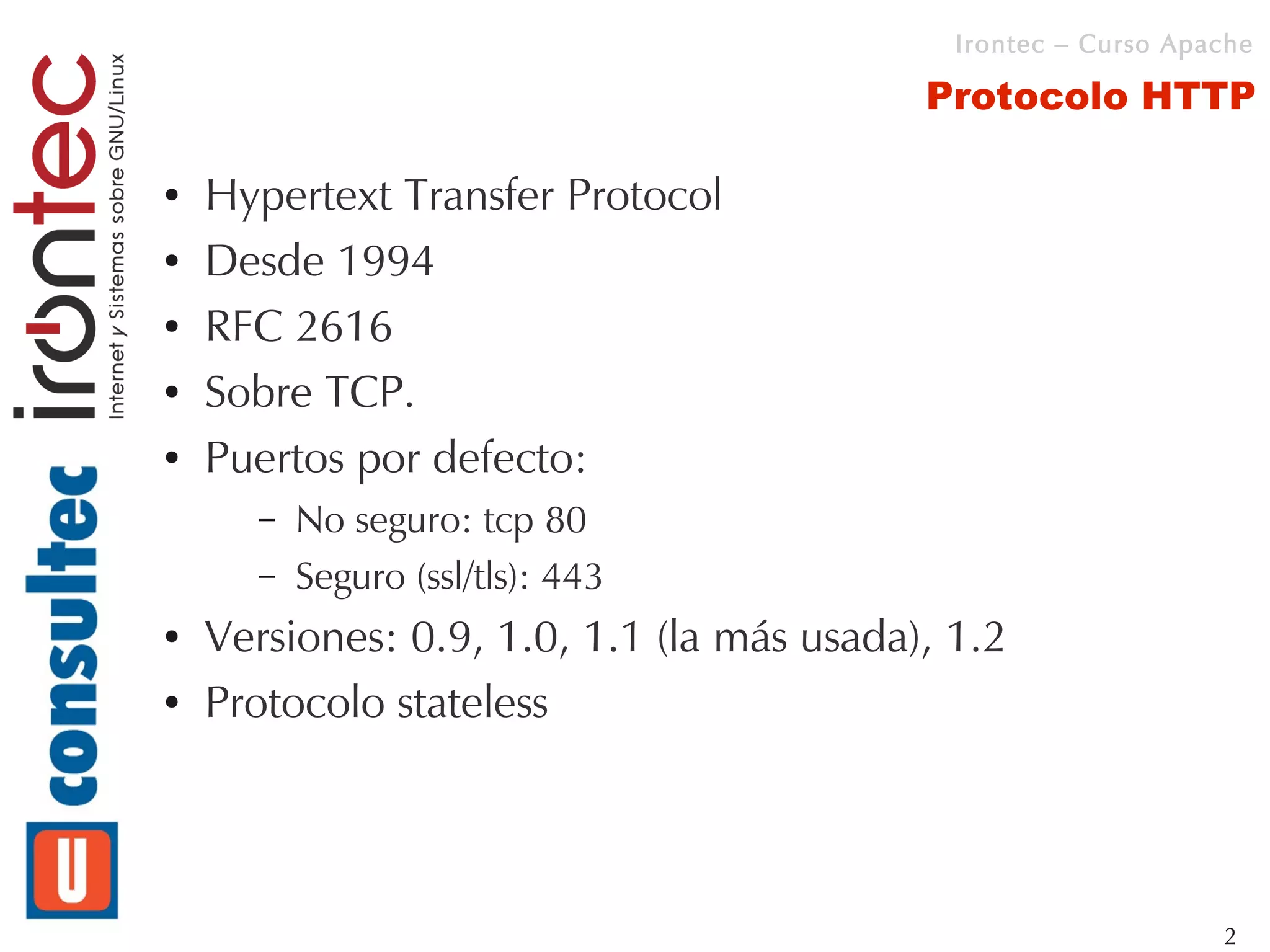 El documento describe el protocolo HTTP, incluyendo sus elementos, mensajes de petición y respuesta, códigos de estado, negociación de contenidos, conexiones persistentes y otras características. Explica que HTTP es un protocolo sin estado que funciona sobre TCP y que Apache es el servidor web HTTP más utilizado, siendo software libre y multiplataforma.