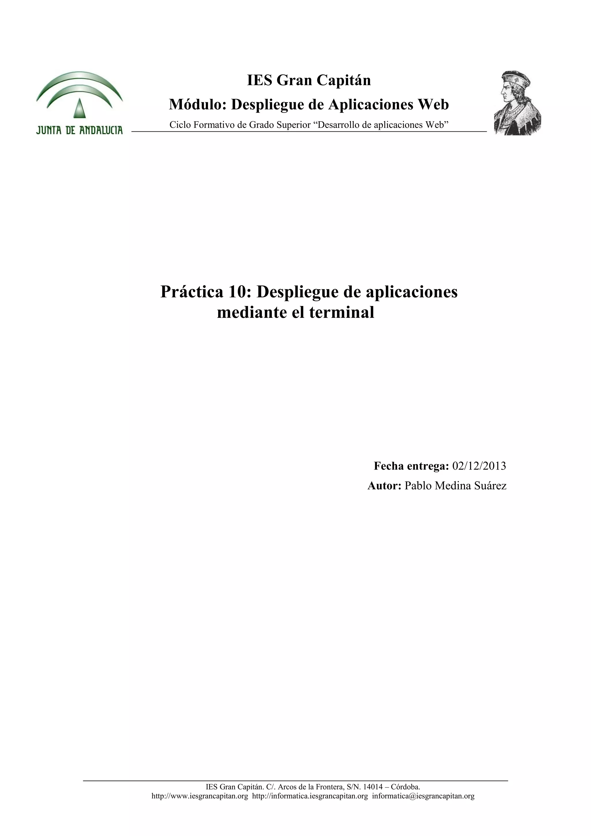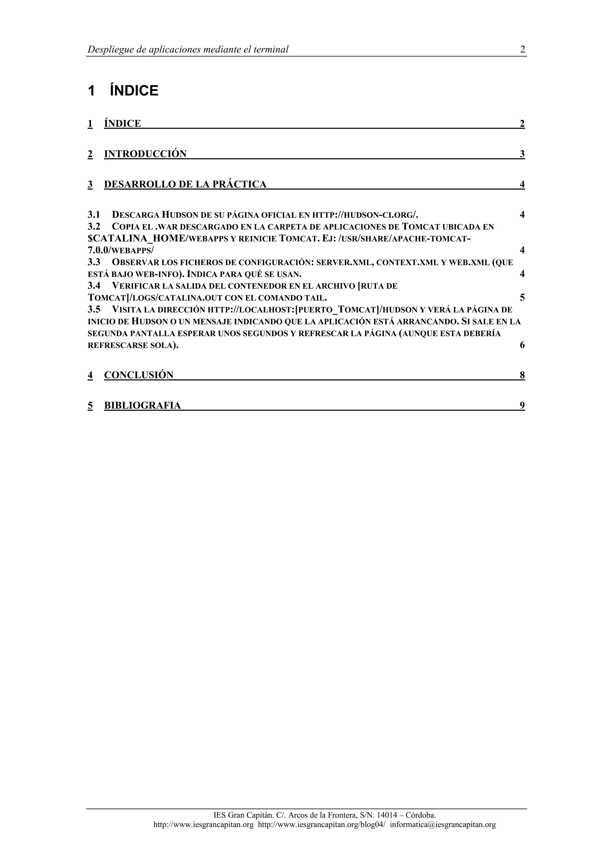 Este documento describe los pasos para desplegar la aplicación Hudson en un servidor Tomcat utilizando la línea de comandos. Inicialmente se descarga el archivo .war de Hudson y se copia a la carpeta webapps de Tomcat. Luego se reinicia Tomcat y se verifica que la aplicación se despliega correctamente accediendo a la dirección URL correspondiente.