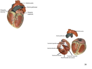 El documento describe el aparato circulatorio y sus componentes principales. Explica que el corazón bombea la sangre de forma continua a través de las arterias, venas y capilares para transportar oxígeno y nutrientes a las células y recoger dióxido de carbono y desechos. La sangre realiza dos circuitos: la circulación pulmonar, que oxigena la sangre, y la circulación sistémica, que distribuye la sangre oxigenada por el cuerpo.